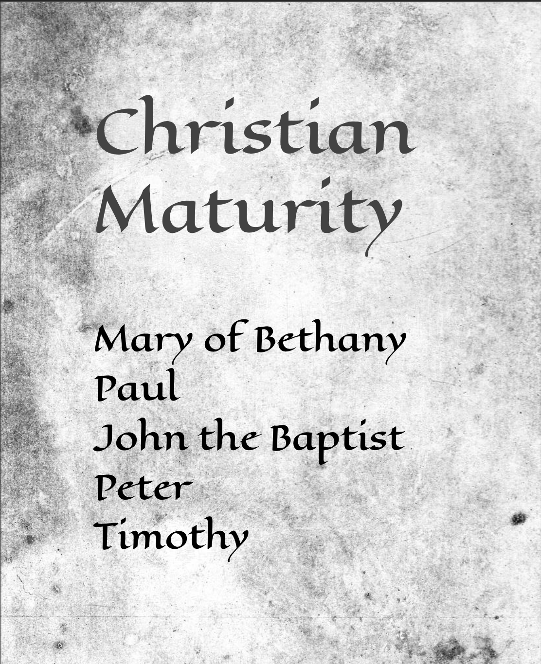 Our May-June sermon series is about Christian maturity. We’re looking at Mary of Bethany, Paul, John the Baptist, Peter and Timothy to learn about remaining, growing and deepening in faith in Jesus.